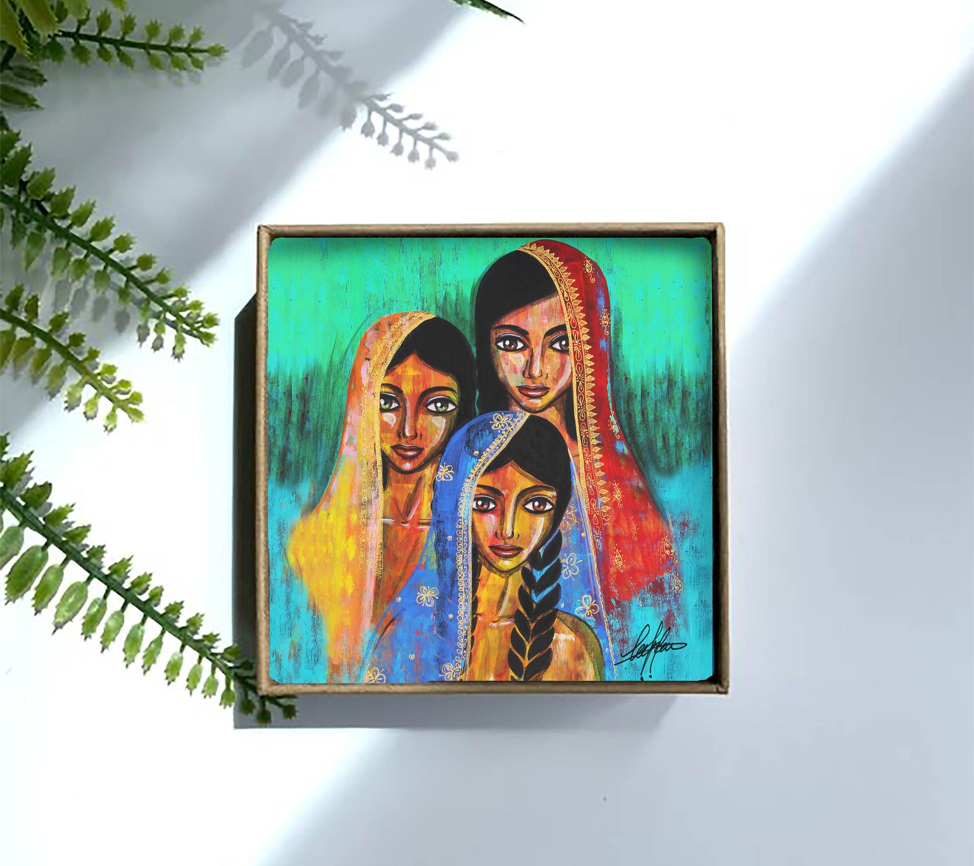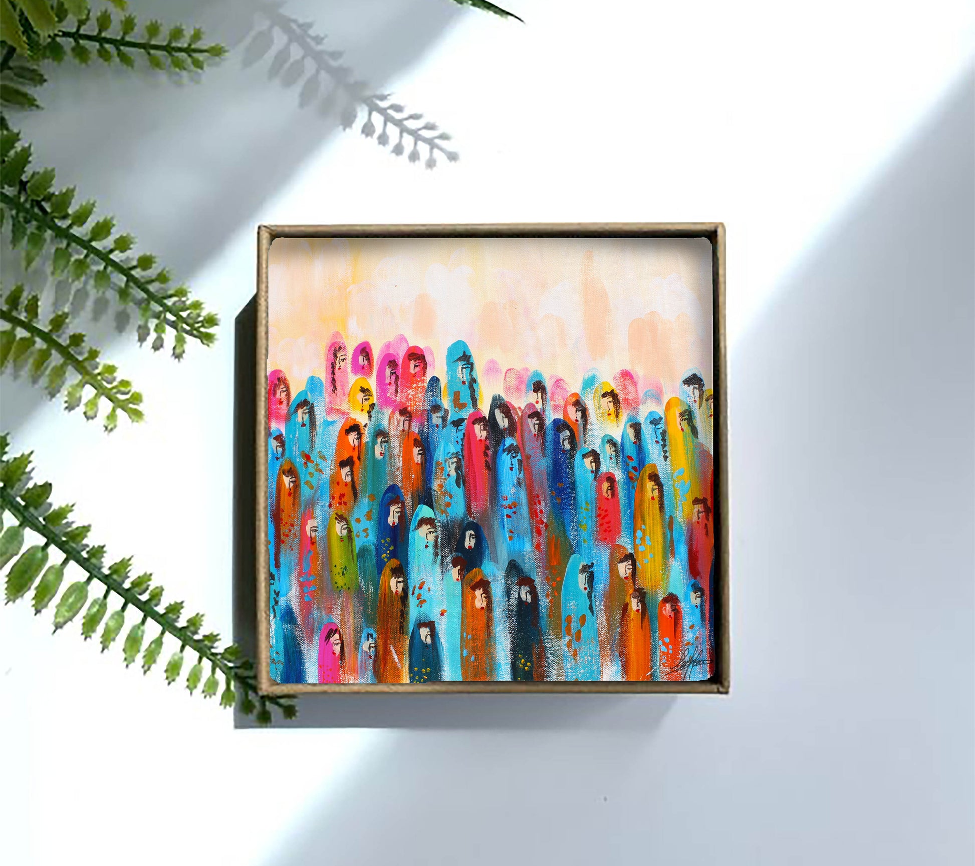 Enhance your space with these non-slip ceramic coasters, backed with cork to prevent scratching and ensure stability even on smooth surfaces. Designed to protect your tables from stains, these coasters are both functional and stylish, showcasing exclusive artwork by renowned Bahraini artist Leena Al Ayoobi.